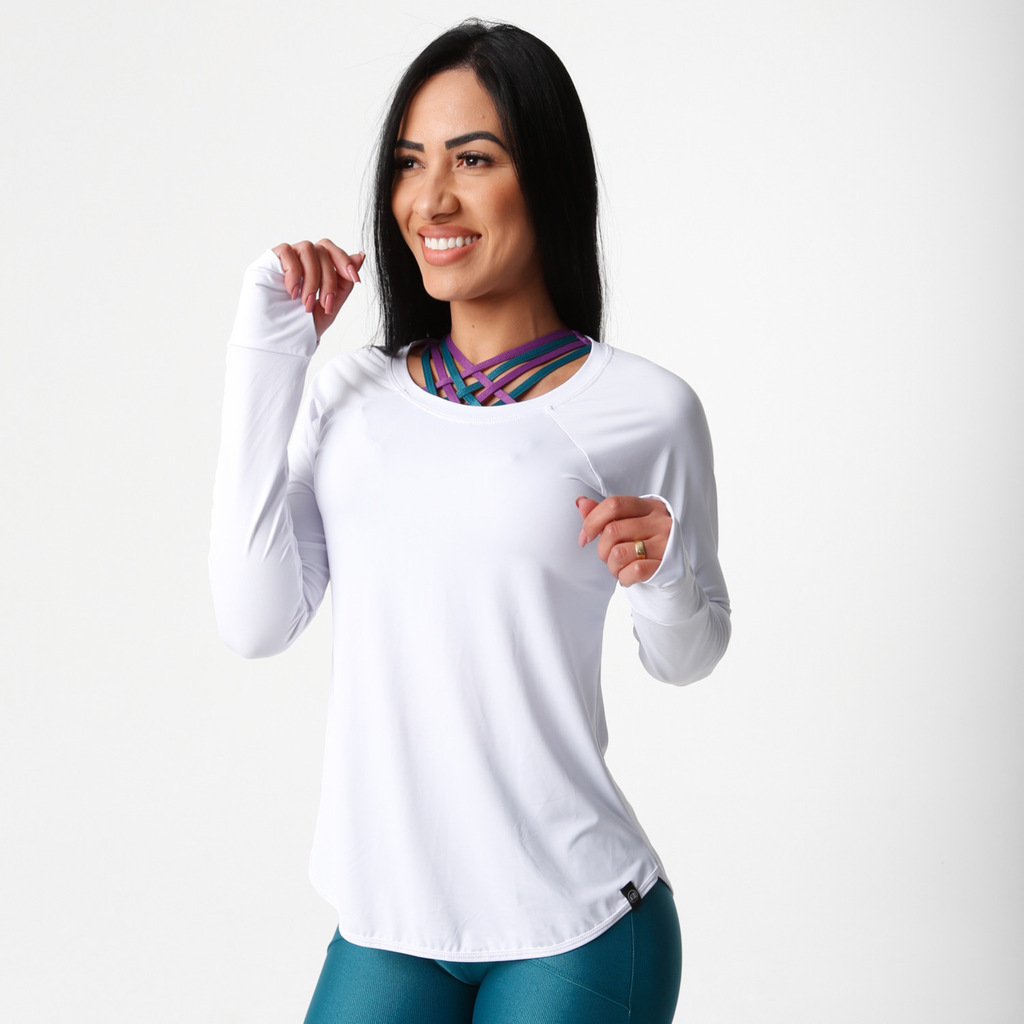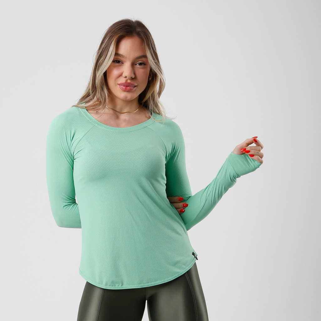 A Camiseta Feminina Fitness Manga Longa é a combinação perfeita de praticidade e estilo para seus treinos e momentos casuais. Confeccionada em poliamida com toque macio, oferece conforto, respirabilidade, secagem rápida e proteção UV para atividades ao ar livre. Sua modelagem alongada cria um visual moderno e versátil, enquanto a gola redonda garante um caimento atemporal. As mangas com abertura para o polegar trazem ainda mais funcionalidade e um detalhe diferenciado, tornando essa peça indispensável no seu guarda-roupa fitness.