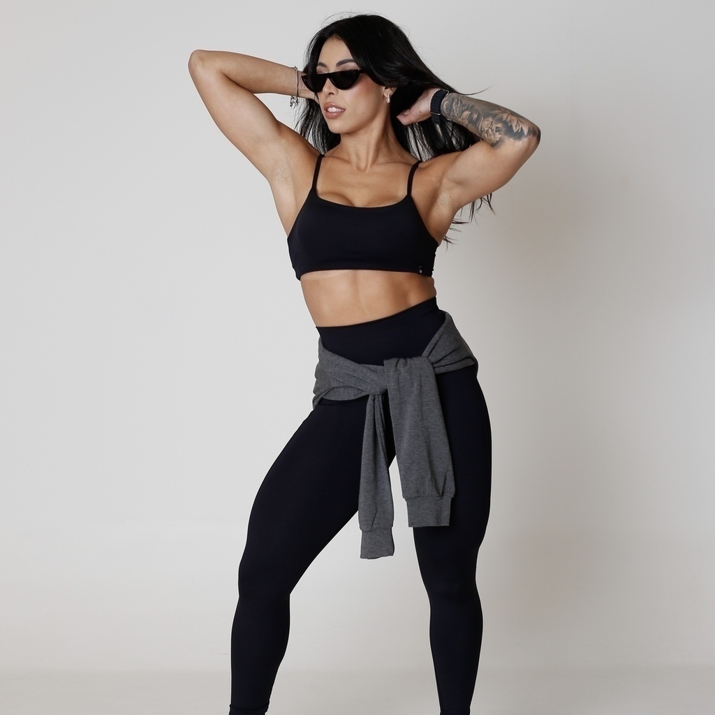 A nossa Legging Basic foi feita pra valorizar suas curvas e deixar você pronta pra qualquer treino — ou pra aquele rolê depois da academia. As costuras estratégicas dão um up no visual, desenhando a perna e arredondando o bumbum do jeitinho que a gente gosta. O cós duplo com compressão dá aquele suporte e ainda afina a cintura, tudo com muito conforto. Pra fechar, um bolso superprático no cós que leva o básico sem complicação. O preto é aquele clássico que cola com tudo e nunca perde o charme.