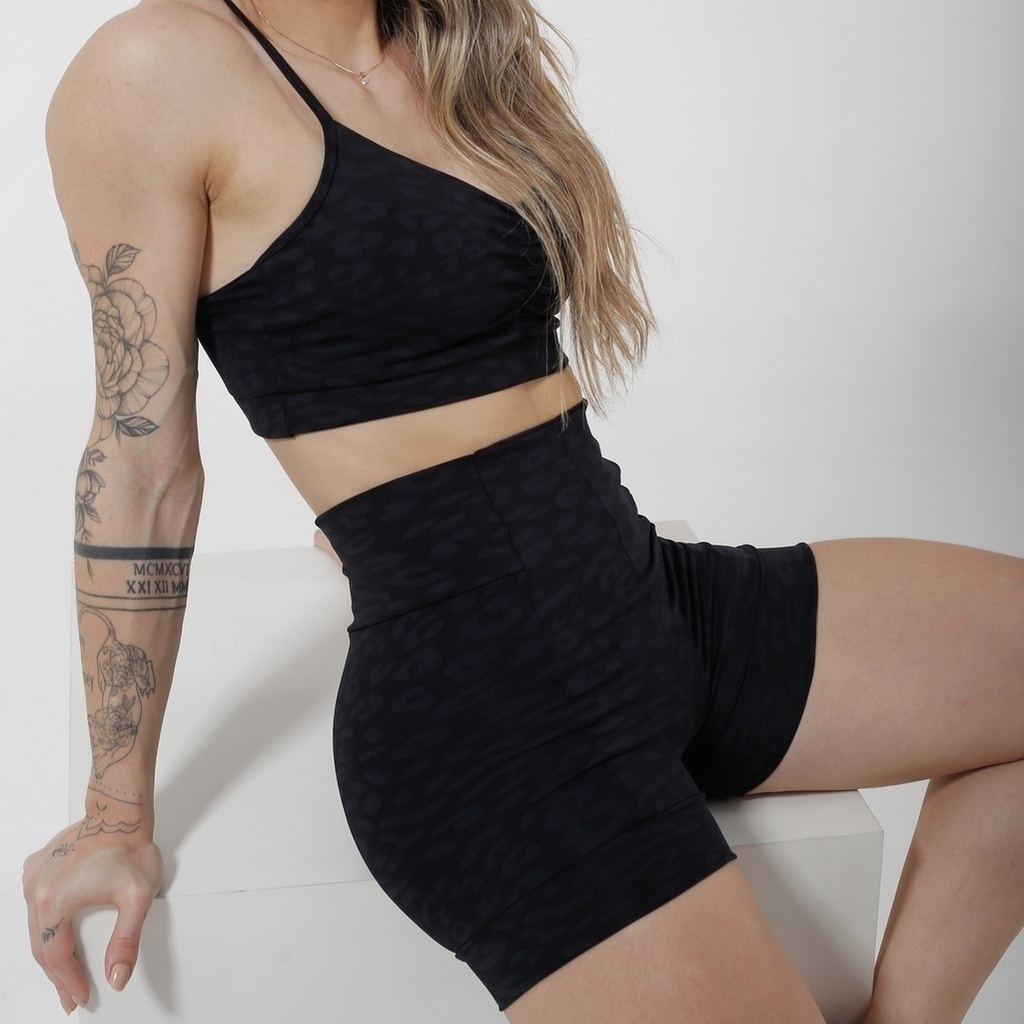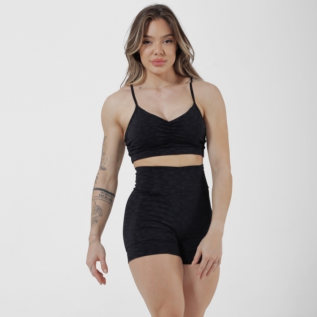 O Short Kamille com cintura alta é a opção perfeita para quem busca conforto e estilo durante os treinos. Seu cós ajuda a afinar a cintura, proporcionando uma silhueta mais delineada, oferece também maior sustentação e segurança durante a prática de exercícios. A malha com textura no camuflado confere um toque moderno e estiloso à peça. Este padrão é tendência no mundo fitness e traz um ar mais despojado para as produções esportivas.